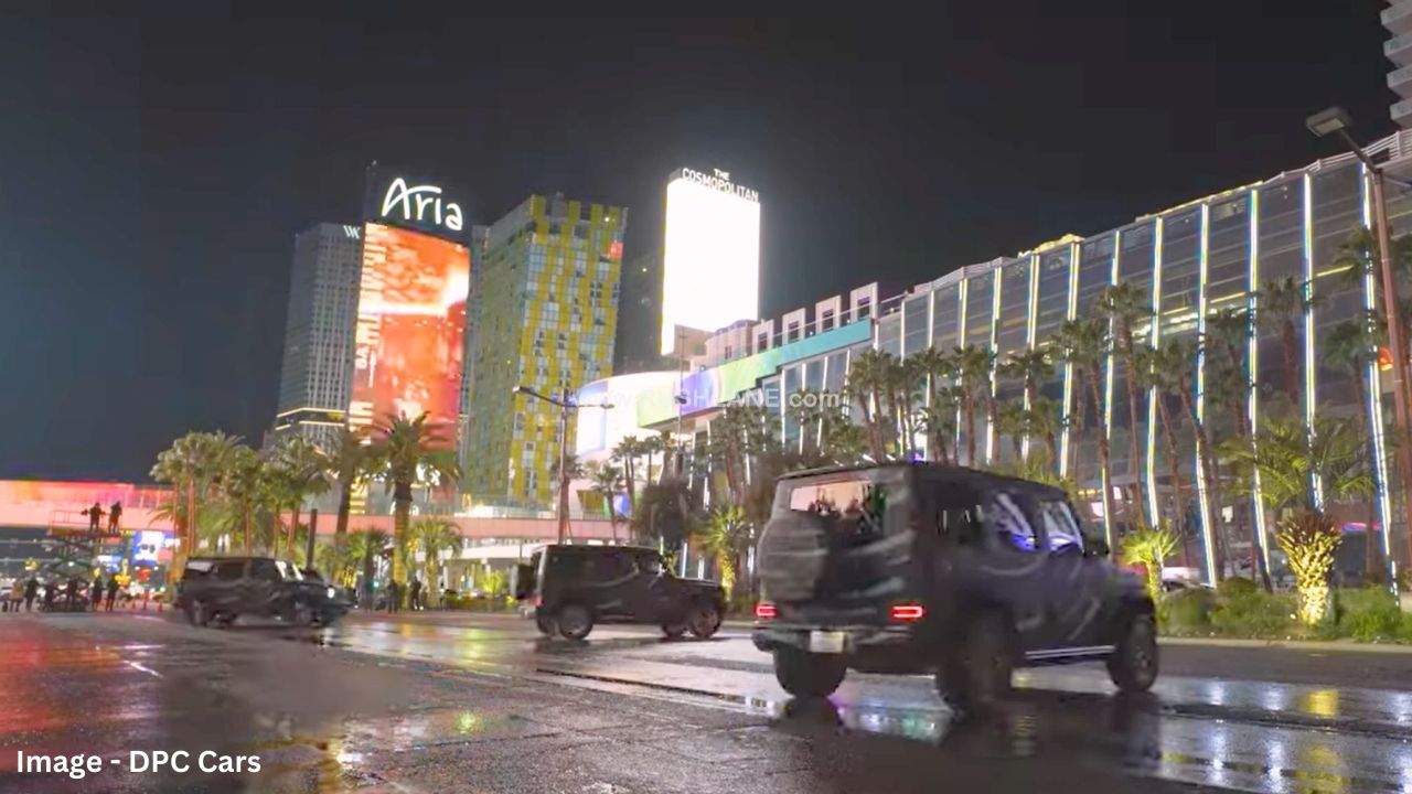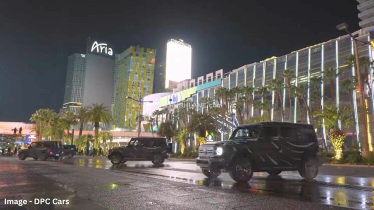 Mercedes has showcased the 360° tank turn feature of its new Electric G-Class in multiple videos posted earlier. The company has chosen to call this feature the ‘G’ turn. Taking it a step further, 4 EQG prototypes can be seen performing synchronized 360° tank turns at the Las Vegas Strip. The spectacular show highlights the superior technological prowess of electric cars in comparison to ICE vehicles.